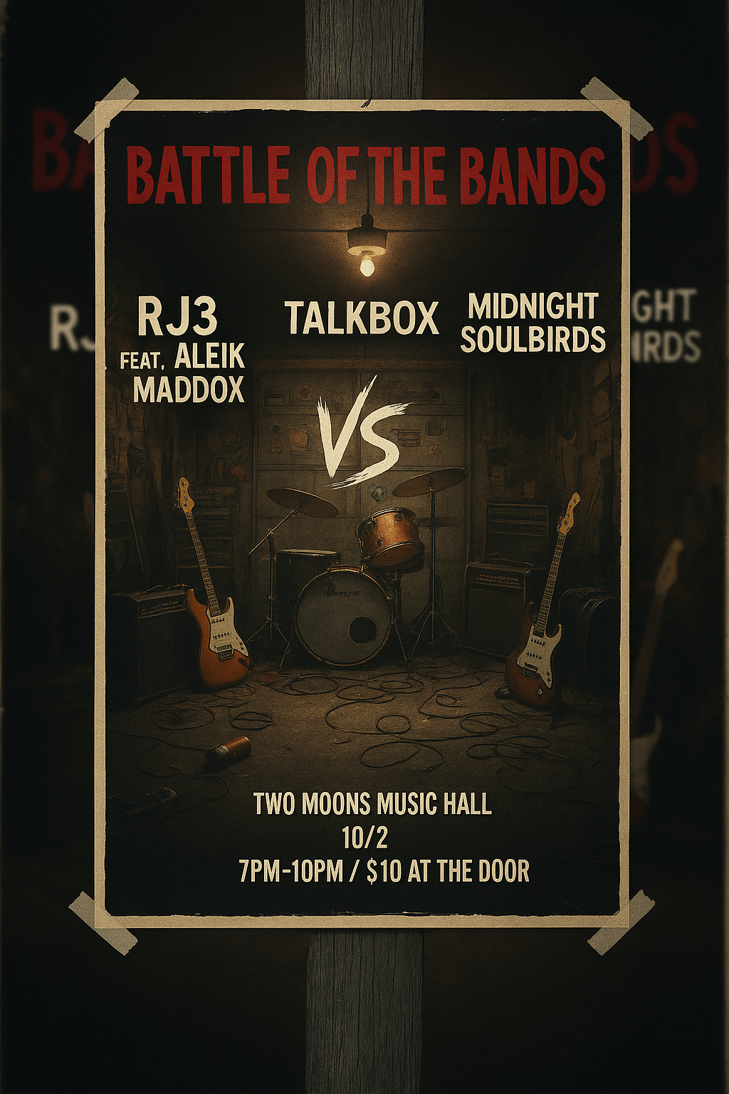 Two Moons Music Hall Presents: Sad Kids Club on 10/17 at 8PM — a night for pop punk anthems, emo nostalgia, and loud catharsis. Catch high-energy sets from 12th Story, plus a genre-bending afterparty with DJ Spexx spinning tracks to keep the angst alive. Bring your friends, scream your heart out, and join the club.