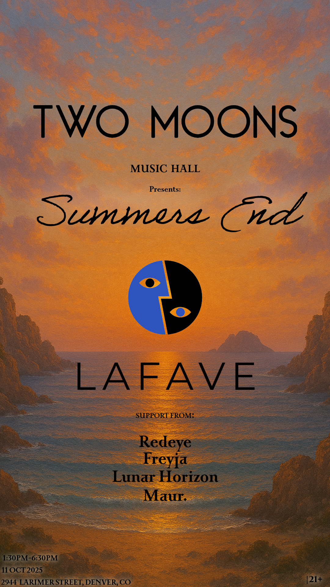 Join us for LIGHT HAUS vol. 5 at Two Moons Music Hall in Rino. Great sound system, great beverages, greater vibes. This volume's selectors will be Denver favorites: Erin Stereo Fuse DOMMYtumont
